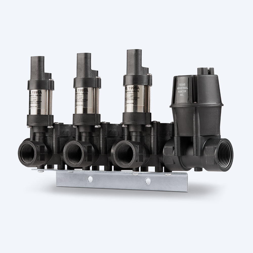 3 – 1999A WP Solenoid Valves with 1 -1541B Pressure Regulator Assembled and Mounted on Bracket