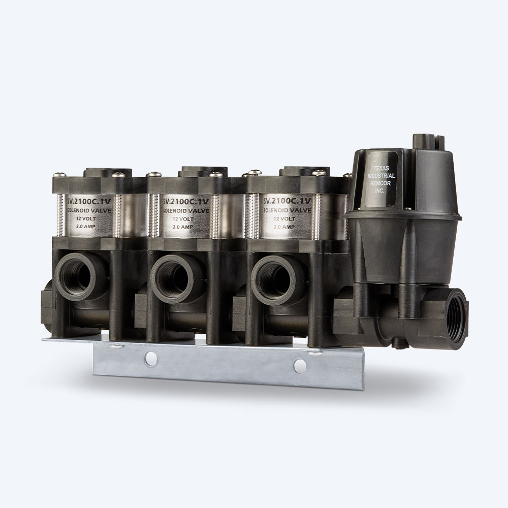 3 – 2100C Spade Solenoid Valves with 1 – 1560B Pressure Regulator Assembled and Mounted on Bracket